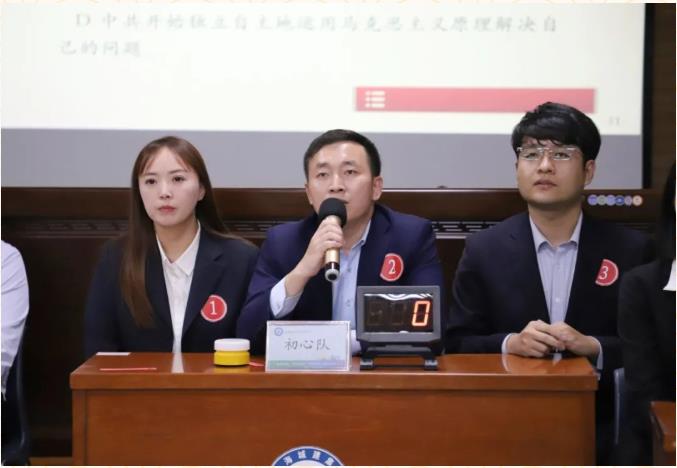 隨著賽場氣氛逐漸膠著,賽程進入了白熱化階段。為了增強比賽的趣味性,第三關(guān)風險題環(huán)節(jié)在答對得分答錯扣分的基礎(chǔ)上增加了隱藏幸運值,各隊派出“小紅手”隨機抽取題目分值?!罢堬w躍隊率先抽題……”“飛躍隊抽取第45道題,分值為30分!”“恭喜答題正確,加30分!”在本環(huán)節(jié)中,四支代表隊的選手信心十足、答題流暢,輕松解決“戰(zhàn)斗”,充分展現(xiàn)了自己學有所獲、學有所用的風采。