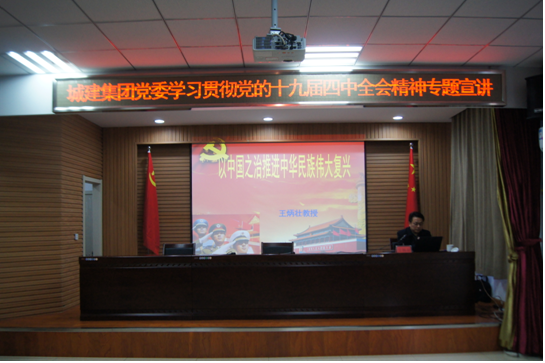 為深入學(xué)習(xí)宣傳黨的十九屆四中全會(huì)精神,1212日,威海城建集團(tuán)黨委理論學(xué)習(xí)中心組對(duì)十九屆四中全會(huì)精神展開集中學(xué)習(xí),邀請(qǐng)市委十九屆四中全會(huì)精神宣講團(tuán)成員、中共威海市委黨校王炳壯教授,以《以中國(guó)之治推動(dòng)民族復(fù)興》為題,為全體黨員和干部職工對(duì)十九屆四中全會(huì)精神進(jìn)行了詳細(xì)講解。集團(tuán)黨委副書記孫曉東同志主持會(huì)議并提出具體要求。