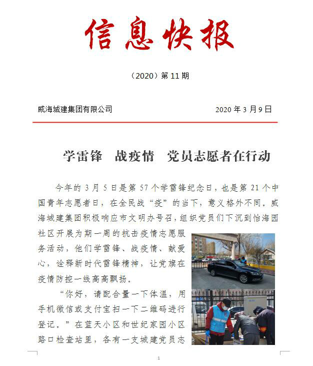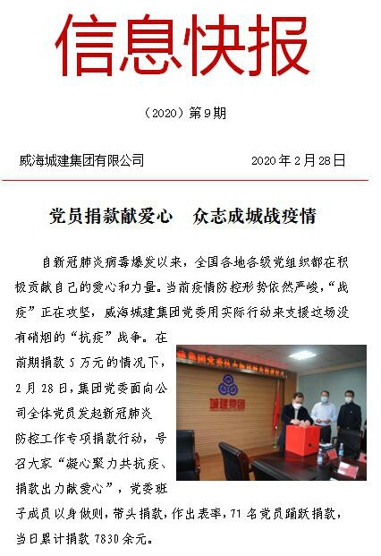 威海城建集團(tuán)全力做好新型冠狀病毒感染的肺炎疫情防控工作