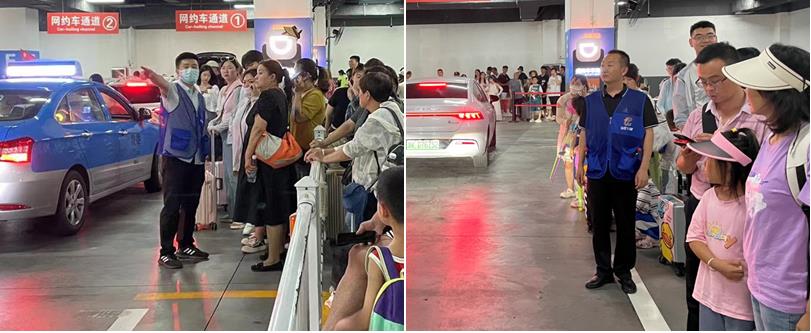 “請(qǐng)您到這邊排隊(duì)上車”“行李我?guī)湍帷薄罢?qǐng)小心身后車輛”,活動(dòng)當(dāng)天,地下車庫(kù)高溫悶熱,城建集團(tuán)“WE先鋒”黨員志愿者們汗流浹背,衣服全部濕透,但大家無怨無悔,不畏高溫酷暑,堅(jiān)持奮戰(zhàn)在客運(yùn)一線,他們始終面帶笑容,不畏辛苦勞累,認(rèn)真履職,贏得了過往乘客的一致好評(píng)。