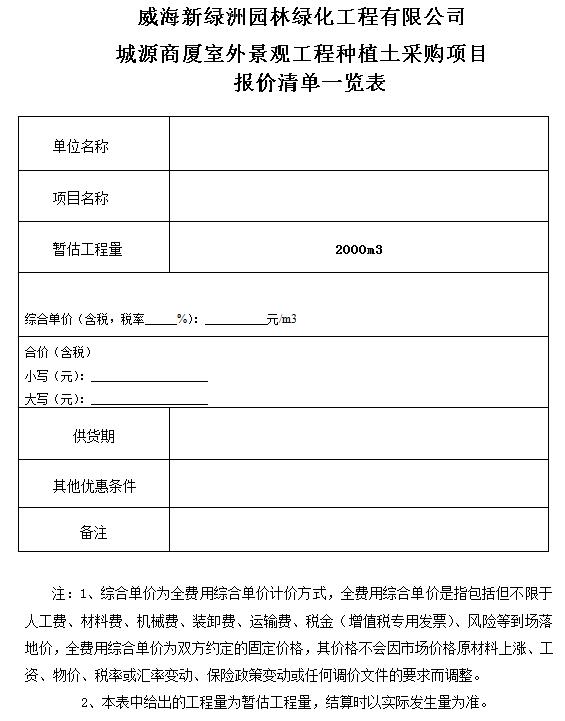 城源商廈室外景觀工程種植土采購(gòu)項(xiàng)目