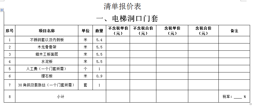 (5)采購范圍:電梯洞口門套、鋼爬梯、電梯機房洞口封堵、包轎廂、地面找平、地下車庫出入口真石漆等(詳見清單)等相關(guān)工作,具體內(nèi)容詳見采購文件。