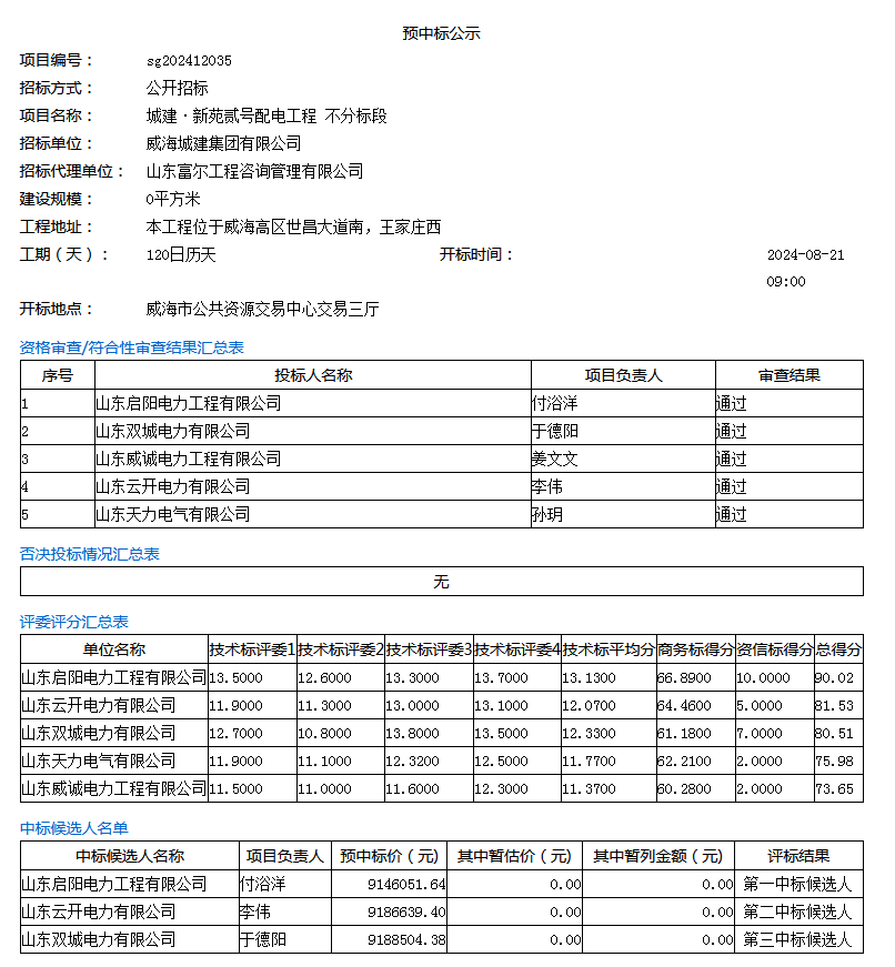 預(yù)中標(biāo)公示